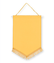 Pennants are made with 100% polyester materials – Coloured Pennants are made from 65/35% poly/cotton. Each pennant comes with an overlocked side trim and luxury looped nylon fringe, hanging cord and rod. Each pennant comes with a choice of trim colours. Minimum order packs of 2