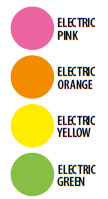 Electric Green, Electric Orange, Electric Pink, Electric Yellow