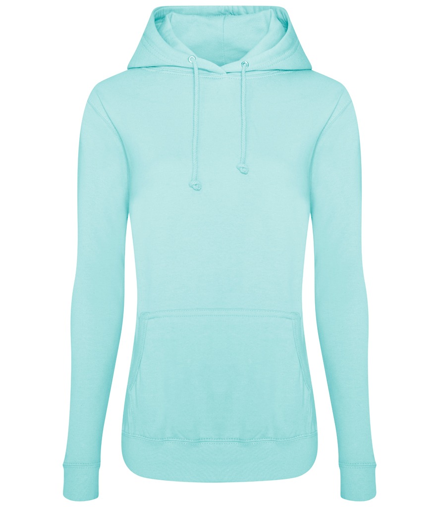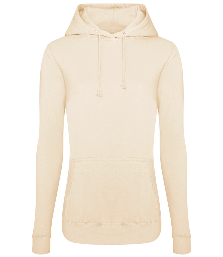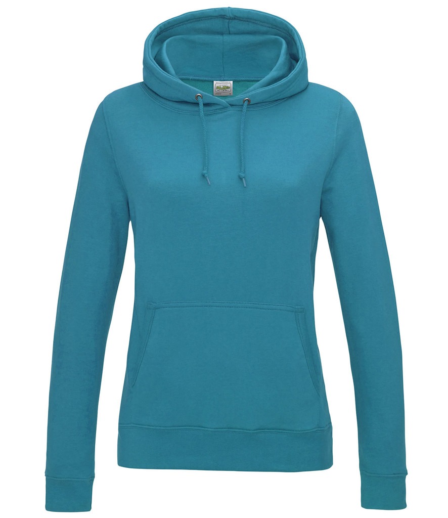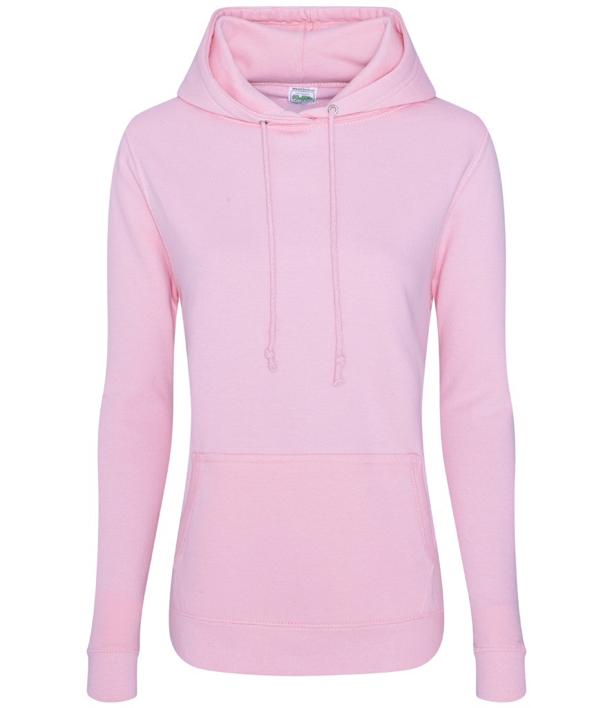 Designed with a feminine fit, match this college hoodie with jeans for a classic casual look. Weight:  280gsm Fabric:  80% Ringspun cotton, 20% Polyester. Smoke Colours: 70% Ringspun cotton, 30% Polyester Size  XS 8 S 10 M 12 L 14 XL 16 2XL 18