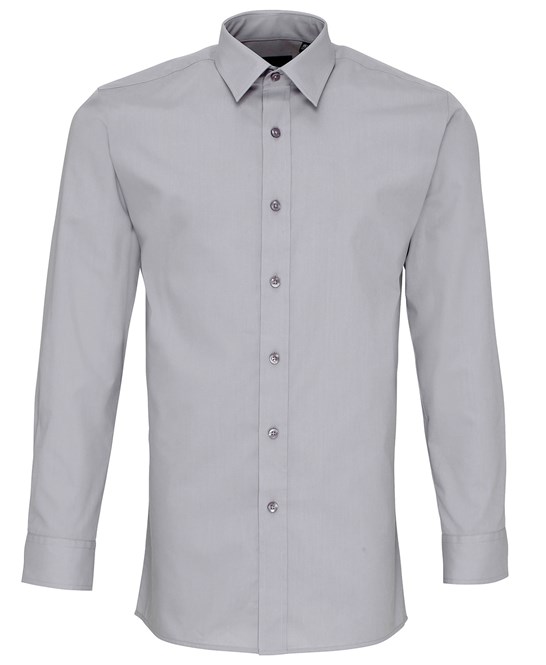 A men’s fitted Poplin shirt that offer a fashionable slim fit style. This shirt comes with an optional chest pocket for attachment if required. A stiff formal cut collar with double buttons to the cuff. Available in our bestselling colours from the Premier ‘Colours’ collection.