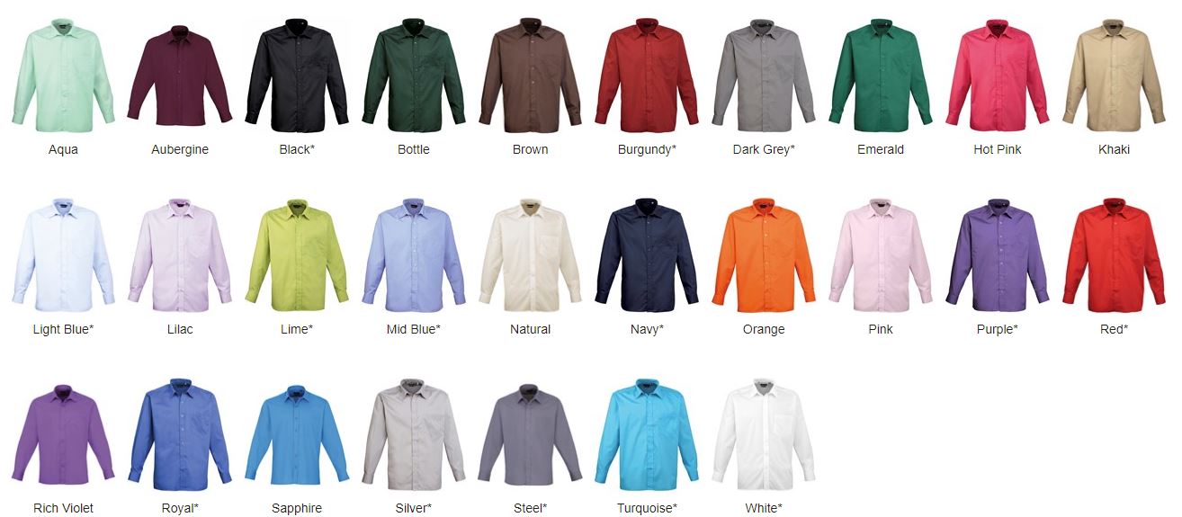 A men’s long sleeve Poplin shirt available in thirty colours. This classic work shirt has a stiffened formal cut collar and a left breast open mitred pocket. The long sleeve style has button fastened cuffs making for a smart and stylish shirt.