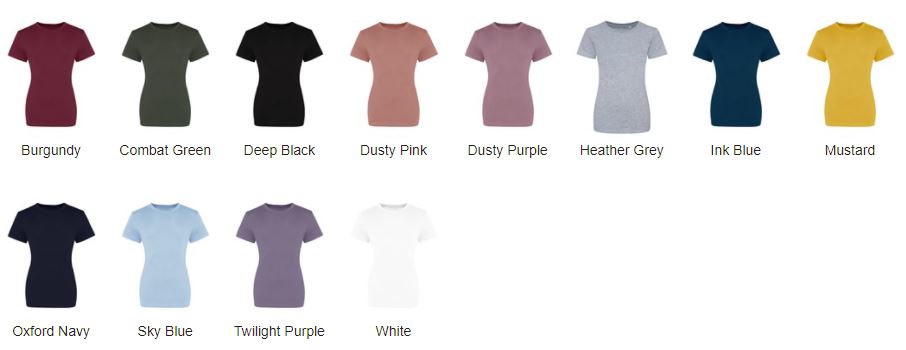 | Colour | Burgundy, Combat Green, Deep Black, Dusty Pink, Dusty Purple, Heather Grey, Ink Blue, Mustard, Oxford Navy, Sky Blue, Twighlight Purple, White |